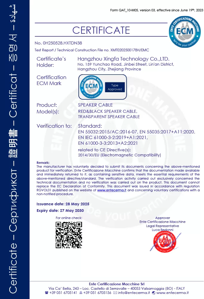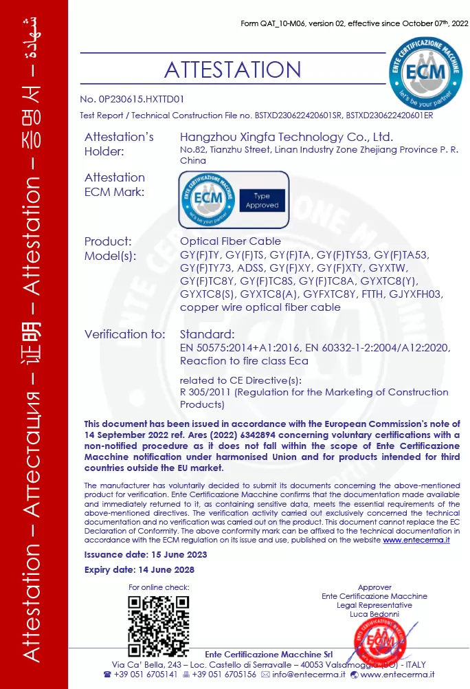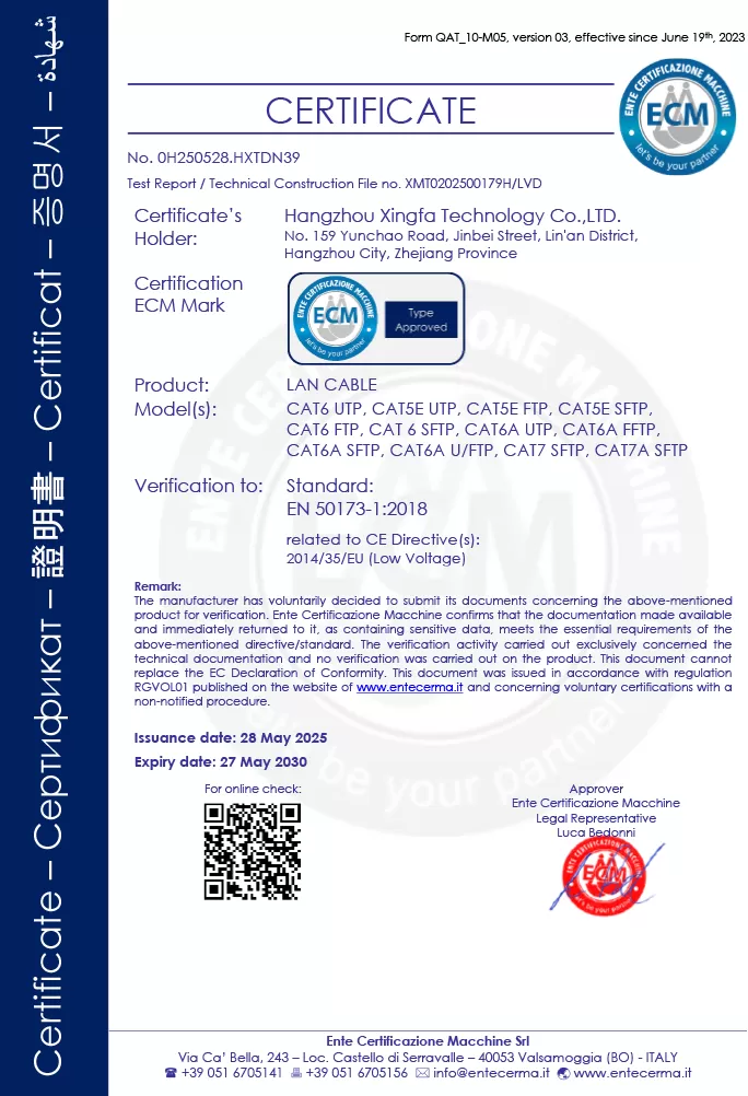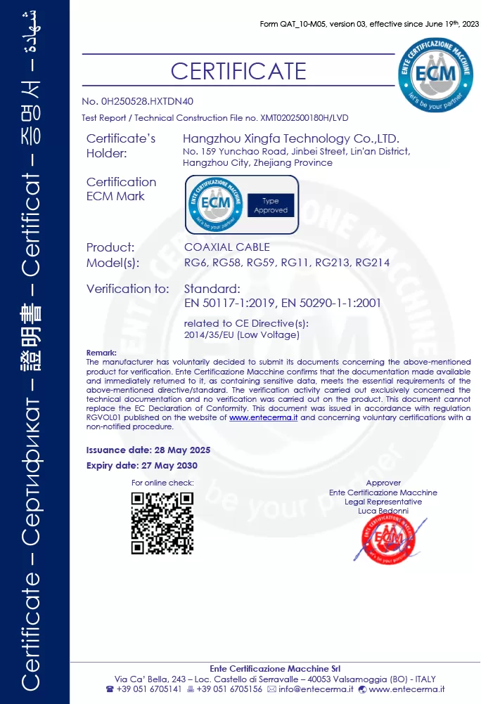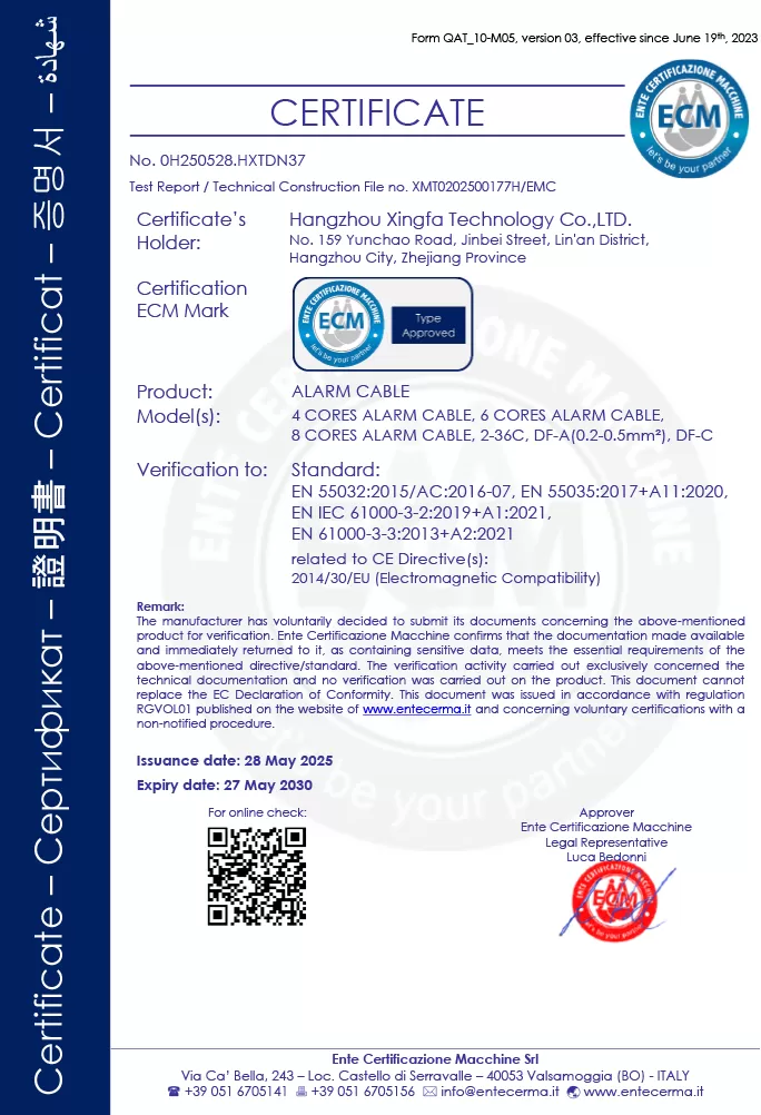 No, this is a common misconception. The CE Mark is a self-declaration by the manufacturer, not a quality seal. It is our (Hangzhou Xingfa's) legal declaration that our cables fully comply with all applicable EU health, safety, and environmental legislation. We base this declaration on rigorous testing against harmonized European standards.