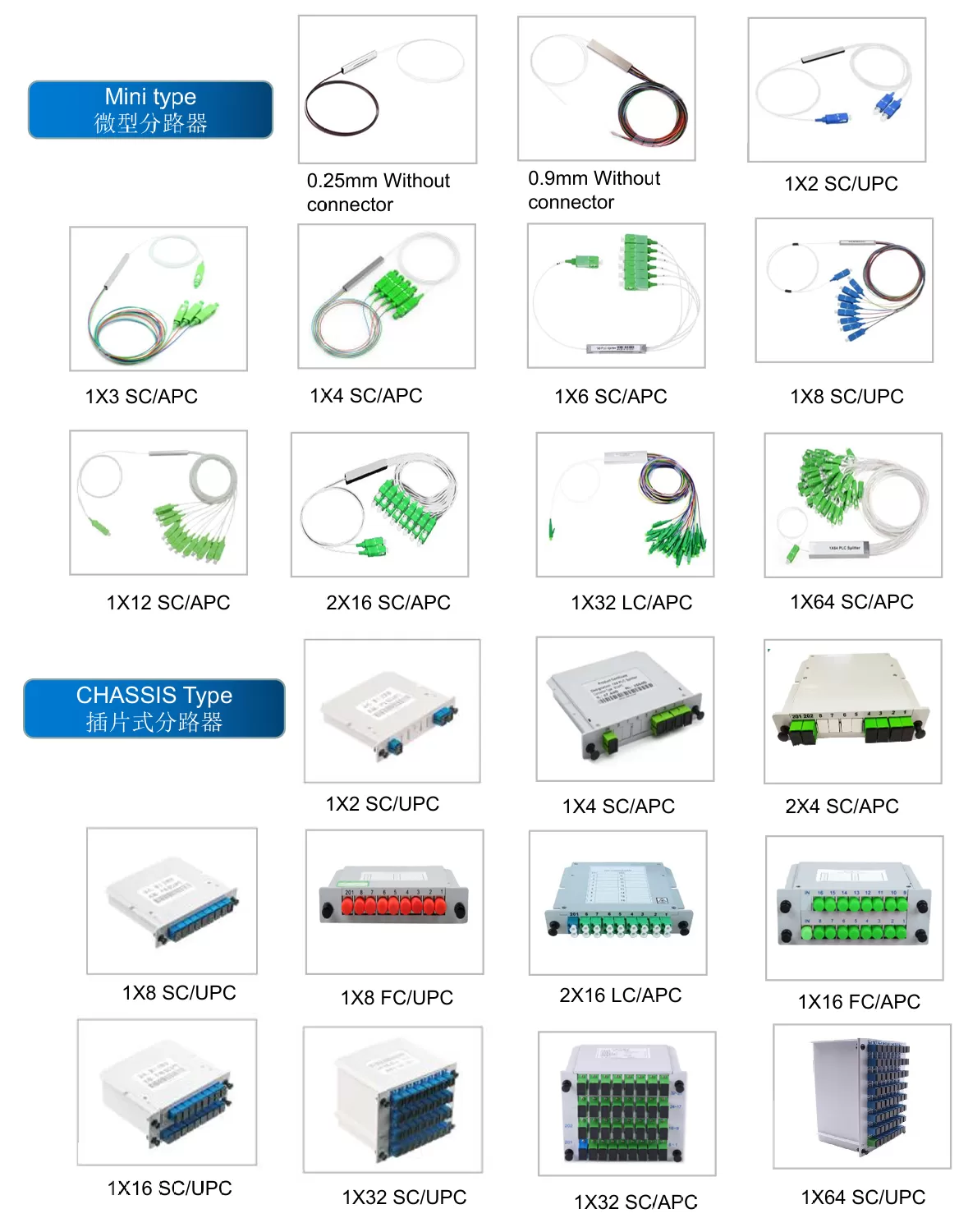 Product Type | 1x2 | 1x3 | 1x4 | 1x6 | 1x8 | 1x12 | 1x16 | 1x32 | 1x64 | 1x128 | ||